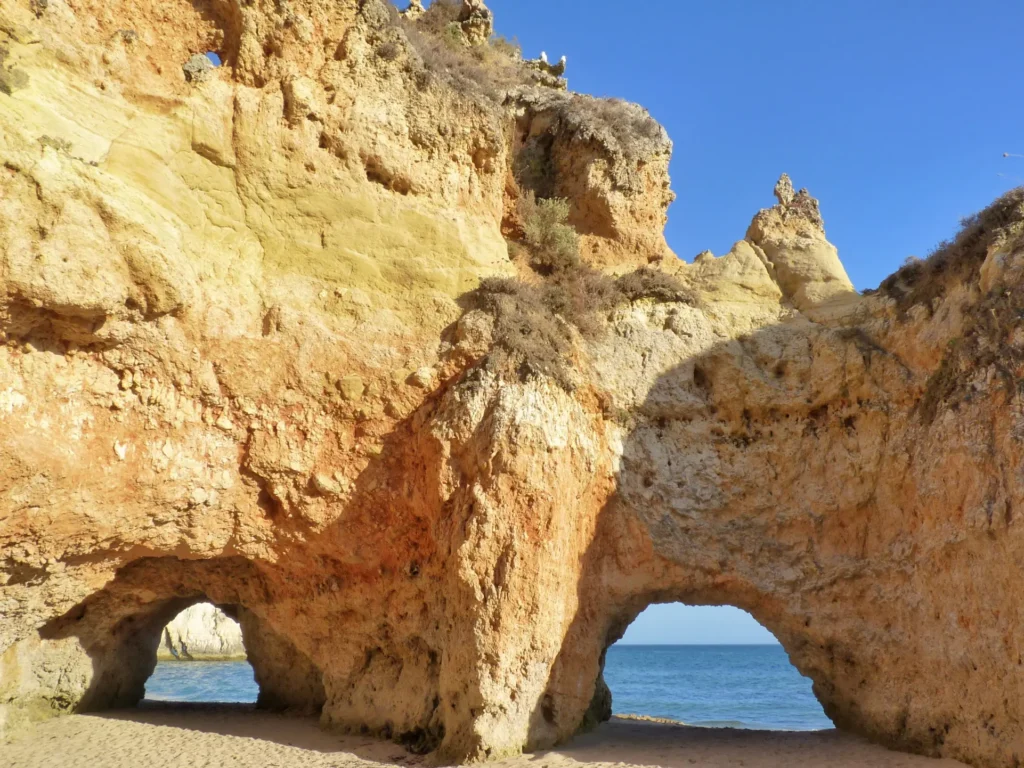 On the far eastern side of Alvor, but away from the hustle and bustle of Praia da Rocha, Prainha is one of those oases in the Algarve which aren’t affordable for all people. However, its beach is open to the public. Accessed from Três Irmãos beach – through a passage between the rocks on the east side – or from a dead-end street that starts on the municipal road connecting Rocha to Alvor, and then down some stairs, Prainha is sheltered, surrounded by cliffs, therefore ideal for those who like cosier places with some shade for much of the day. In fact, there are three small beaches separated by rocks, and during high tide they are only connected by tunnels carved into the rocks by erosion. Also part of the charm of this beach is a bar/restaurant nestled into the cliff, with a rustic-clean and quiet atmosphere. Prainha is the right place for those who like to enjoy the Algarve in a carefree way.