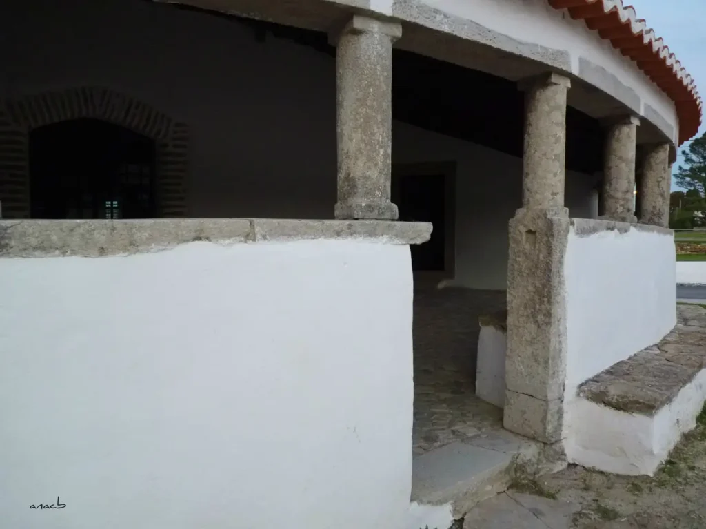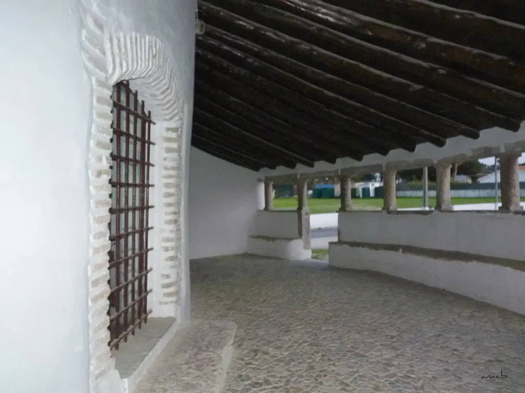 Tem ainda a particularidade de possuir um alpendre que acompanha metade da circunferência do edifício, com colunas de pedra e janelas que lhe dão um invulgar aspecto de casa de habitação.