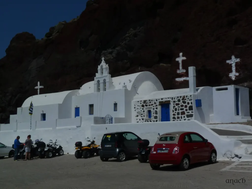 Há contudo uma praia que é ponto obrigatório de visita na ilha: a praia vermelha, Kokkini Paralia de seu nome original.
