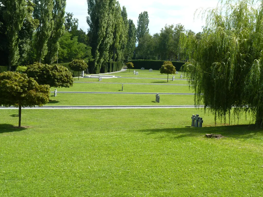 O aspecto deste cemitério tem aquele aspecto que vemos nos filmes americanos, um longo relvado. Parece um jardim.