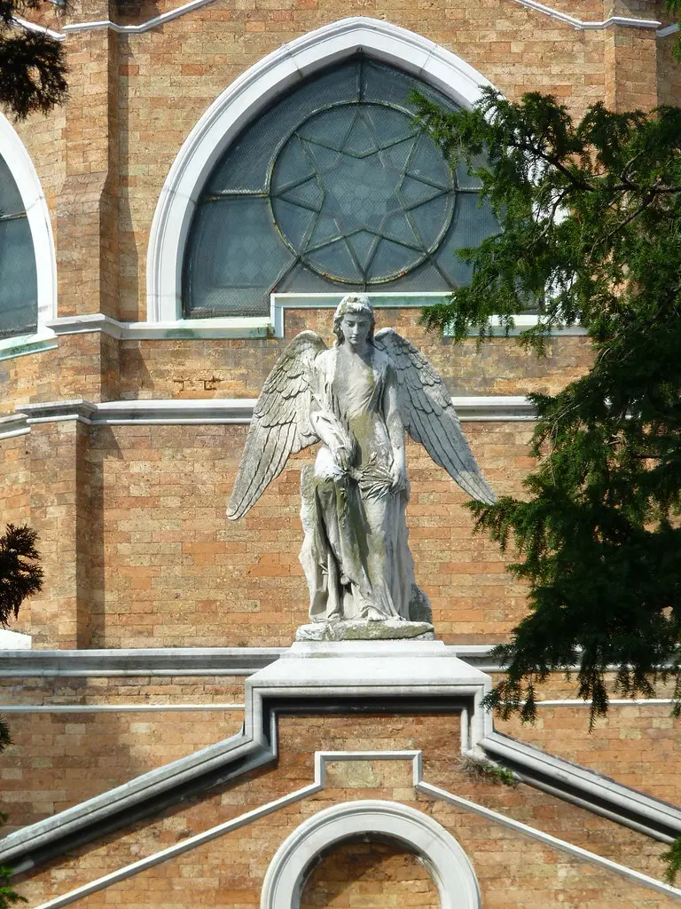 A ilha de San Michele, entre Murano e Veneza, está praticamente toda ocupada pelo monumental cemitério desta cidade, criado em 1813 por ordem de Napoleão, quando a Sereníssima se encontrava sob o domínio do Imperador. Estende-se por uma área de cerca de 450×400 metros e está dividido em vários sectores religiosos – católico, ortodoxo e evangélico – com espaços específicos para militares, padres e freiras. Refrescado por ciprestes e buxos, tem muros, recantos e caminhos que reduzem a sensação de grandeza e proporcionam um ambiente mais intimista, e nele há de tudo um pouco, desde simples campas em pedra no chão ou nas paredes, até grandiosos jazigos e monumentos. Aqui estão sepultadas muitas personalidades oriundas de todo o mundo, o que mostra bem o fascínio que Veneza sempre exerceu também fora das suas fronteiras. O ambiente é profundamente silencioso, mais ainda do que é costume nestes locais, o que se deve à ausência do ruído do trânsito automóvel que é pano de fundo habitual nas grandes cidades.