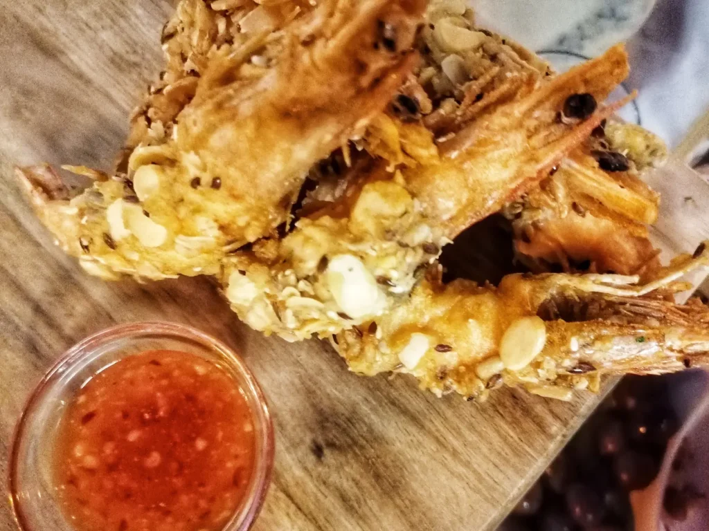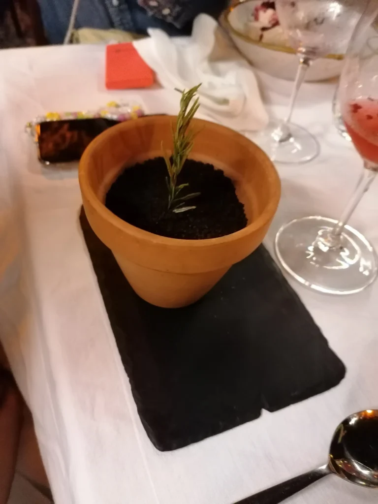 O jantar foi completamente diferente. Na esplanada ao ar livre do Palace, a poucas centenas de metros do Rossio, vieram para a mesa petiscos atrás de petiscos, cada um melhor que o outro. Só para abrir o apetite, deixo aqui os nomes de alguns dos que provámos: peixinhos da horta (super estaladiços); croquetes de alheira com molho de mostarda; salada de pêra, rúcula e queijo da ilha; chocos panados com molho de iogurte e lima; gambas crocantes e geleia picante de citrinos; coscorões de peixe branco, malagueta e lima. Tudo regado com uma maravilhosa sangria de frutos vermelhos. Quanto às sobremesas, o destaque vai para a originalidade do cheesecake, que é servido num vasinho de barro, com um pé de alecrim espetado – como se se tratasse de uma planta envasada verdadeira.