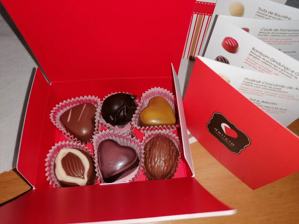 Ainda no capítulo dos sabores, fica aqui mais uma recomendação: os chocolates artesanais da Chocolateria Delícia, situada ao pé do Rossio. Entre os vários mimos com que a Câmara de Viseu nos brindou estava uma caixinha com alguns dos bombons de autor que esta casa produz, e que têm nomes tão sugestivos como “coulis de manga”, “ganache de noz”, “bombom de flor de sal e alecrim” (sou louca por chocolate com sal…), “trufa de cacau” ou “bombom de vinho rosé”, entre outros igualmente apetitosos. No que toca a estes chocolates, “Delícia” não é um exagero.