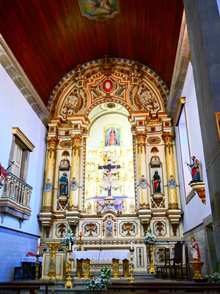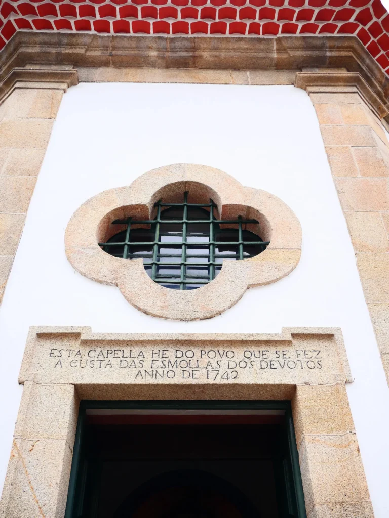 O passeio pelo centro histórico de Viseu foi curto, mas ainda assim suficiente para poder apreciar as casas com vários pisos, com janelas altas para deixarem passar o máximo de luz possível, debruadas a cantaria, e varandas com belos ferros forjados. Junto à Porta do Soar, o arco onde existiu uma das principais portas de entrada da cidade medieval, uma inscrição em pedra fez-me parar: “ESTA CAPELLA HE DO POVO QUE SE FEZ A CUSTA DAS ESMOLAS DOS DEVOTOS ANNO DE 1742”. Dedicada à Senhora dos Remédios e com uma invulgar forma exterior octogonal, o interior desta pequena capela é surpreendentemente bonito, sobretudo pelo forte conjunto cromático à base de azul e encarnado, pelos azulejos que cobrem as paredes até meia altura, e pelo colorido retábulo do altar.