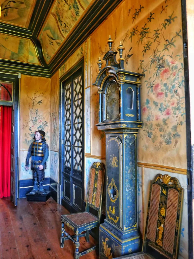 Uma grande parte da casa está ocupada pelas instalações do hotel, que actualmente tem o nome de Parador Casa da Ínsua (faz parte da rede espanhola de Paradores de Turismo). As restantes divisões fazem parte do Núcleo Museológico e são um acervo riquíssimo de obras de arte, mobiliário, objectos decorativos e elementos arquitectónicos dos séculos passados. Notáveis são sobretudo os tectos, em madeira ou em gesso a imitá-la, com pinturas em trompe-l’oeil, brasões ou motivos clássicos. Há uma Sala Chinesa muito original, onde pontifica um samurai mecânico e as paredes e o tecto estão forrados com um maravilhoso papel pintado. No Salão Nobre, o piso é um magnífico embutido feito com 14 qualidades de madeira diversas, e sobre a lareira há um relógio finamente trabalhado, que em tempos idos fazia soar uma melodia diferente para cada segmento do dia. O percurso da visita levou-nos também às cozinhas, uma branca, mais modernizada e já com utensílios e funcionalidades relativamente “recentes” (sendo que recentes significa um século, mais coisa menos coisa), e outra preta, com uma grua para panelas e uma ampla chaminé.