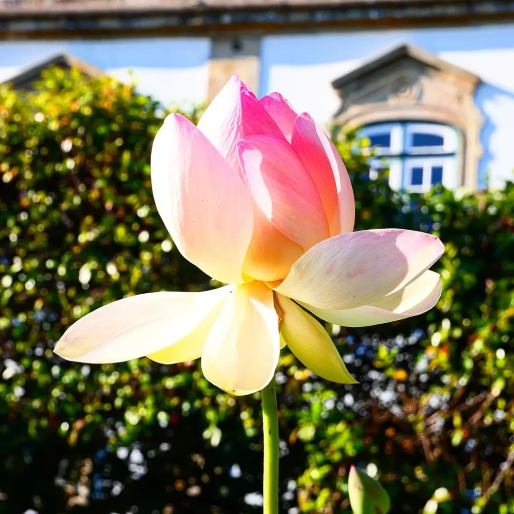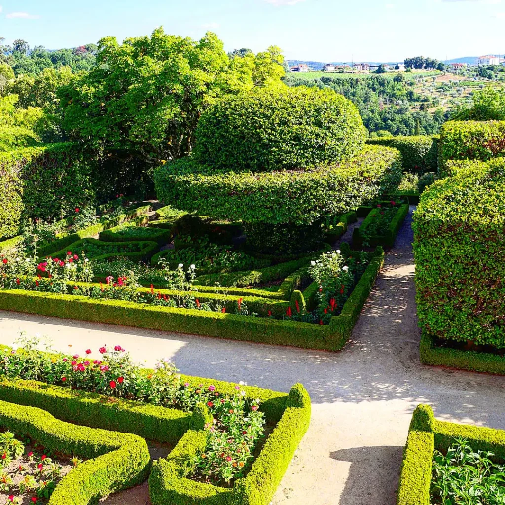 Do interior saímos para os jardins – plural, porque são vários e de géneros diferentes. Há o francês, com os seus parterre geométricos e um lago com flores de lótus indianas, que só vivem 48 horas e tivemos a sorte (e felicidade!) de ver em flor. Há o inglês, mais selvagem, com muitos arbustos e árvores de grande porte – sequóias, cedros, paus-brasil. Há o dos aromas, com flores e um canteiro onde estão plantadas videiras das castas usadas para os vinhos Casa da Ínsua. Há um tanque com patos e um cisne, fontes, mesas e esculturas em pedra. E há um sem-fim de preciosidades espalhadas pelos 40 hectares da quinta, que uma visita de poucas horas não consegue abarcar.