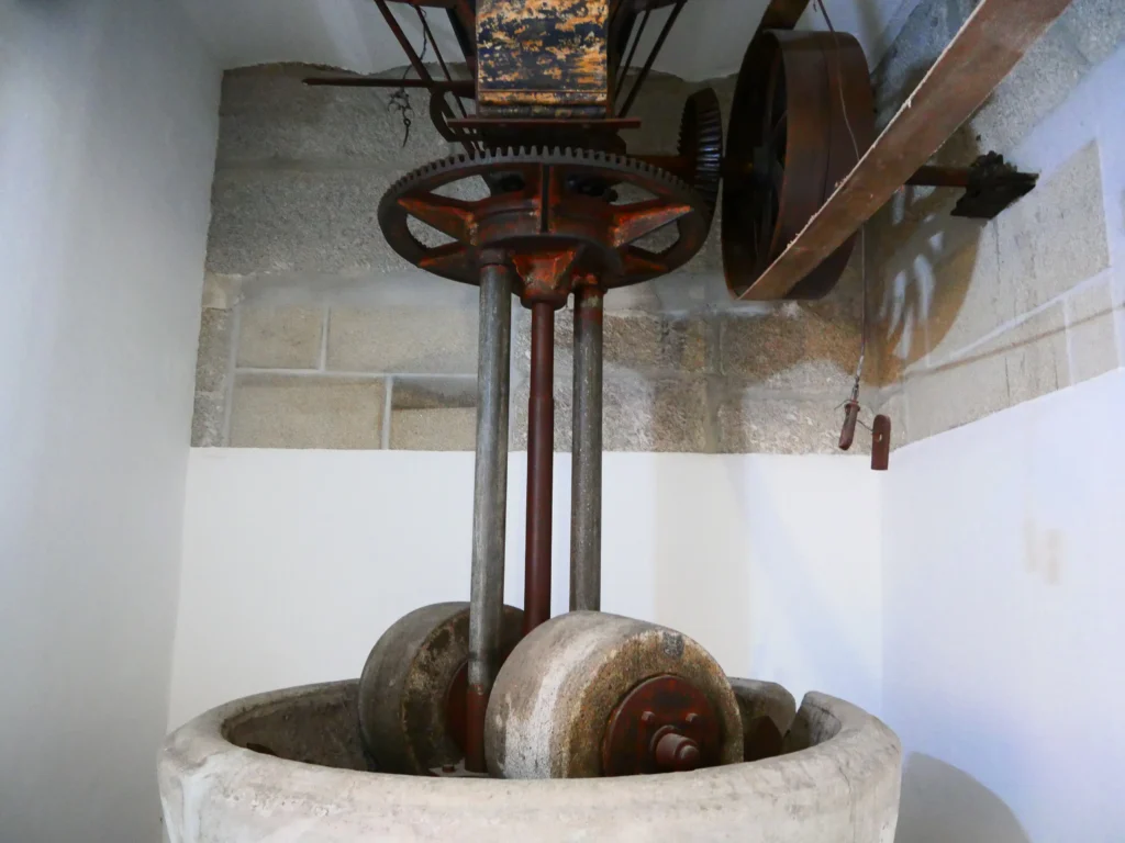 Além do vinho, da quinta que rodeia a Casa da Ínsua saem também os outros produtos típicos do concelho de Penalva do Castelo: o queijo Serra da Estrela e a maçã Bravo de Esmolfe. O cardo usado na cura do queijo aqui produzido é igualmente cultivado nos terrenos da quinta, que incluem ainda uma horta onde crescem frutos e legumes variados, base de algumas das compotas que são vendidas ao público. Em tempos trabalhavam aqui mais de mil pessoas e a quinta era praticamente auto-suficiente. Havia uma fábrica de gelo, uma moagem e um lagar de azeite – aliás, o azeite continua a fazer parte da produção própria da quinta. Lado-a-lado com a adega vinícola e a queijaria, as unidades produtivas entretanto desactivadas estão agora inseridas no Núcleo Museológico. Vemos máquinas arcaicas com finalidades desconhecidas (que o Rafael nos explicou prontamente), uma sala com mapas seculares e gravuras antigas representando a fauna e flora tropicais, outras com obras de arte, artefactos e objectos que pertenceram a Luís de Albuquerque e aos seus descendentes, e que ilustram ao mesmo tempo o percurso familiar dos proprietários da quinta e as mudanças sociais e tecnológicas ao longo de três séculos. Vemos os queijos alinhados nas prateleiras, à espera de estarem no ponto certo para irem para a mesa de quem os comprar (a cura demora de 2 a 4 meses), e as misturas de flor do cardo usadas para os curar. Vemos as cubas de aço brilhante e os tonéis de madeira onde as uvas fermentam e o vinho envelhece, e sentimos o cérebro invadido pelo odor forte que é tão típico das adegas. Visitar a Casa da Ínsua e a sua quinta é uma lição de História e um prazer para todos os sentidos, e confesso que me apetecia ter lá ficado mais tempo.