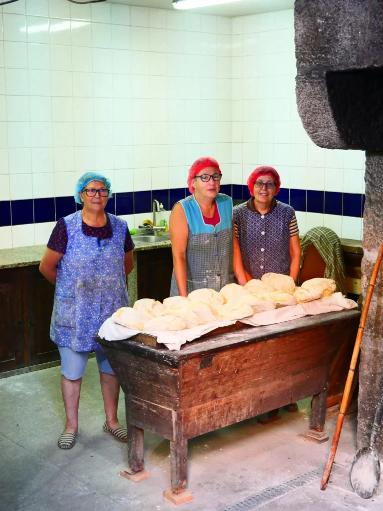 As fadas que produzem estas maravilhas (em Portugal faz-se o melhor pão do mundo!) chamam-se Cilita, Arlete, Maria Cristina e Natividade, mas só as três primeiras é que estavam à nossa espera, acompanhadas pelo vice-presidente da Câmara, José Laires. Fadas que põem todo o seu saber e afecto no pão que sai das suas mãos, e que ainda por cima aturaram com a melhor das disposições as nossas perguntas e pedidos de pose para a fotografia.