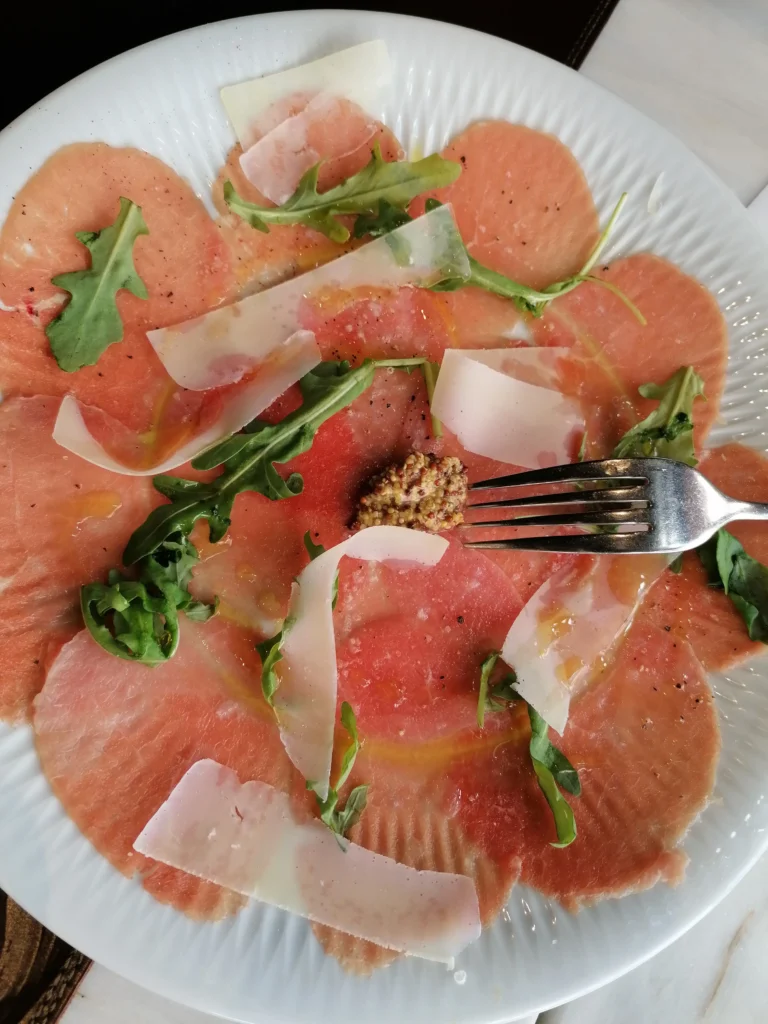 Foi em Viseu que fizemos as refeições do segundo dia do nosso fim-de-semana, e os restaurantes escolhidos foram uma excelente amostra da diversidade gastronómica que a cidade põe à nossa disposição. Na Casa Arouquesa – o nome já diz tudo – a estrela foi a carne desta raça bovina, confeccionada nas duas formas diferentes que são as especialidades deste restaurante: o bife à casa e a vitela assada no forno. Altamente recomendável para os amantes irredutíveis da carne de vaca. Nas entradas, o presunto (mal curado e delicioso) fez sucesso; e à sobremesa, como fiquei indecisa entre o cheesecake de frutos vermelhos e o pudim de coco, provei os dois.