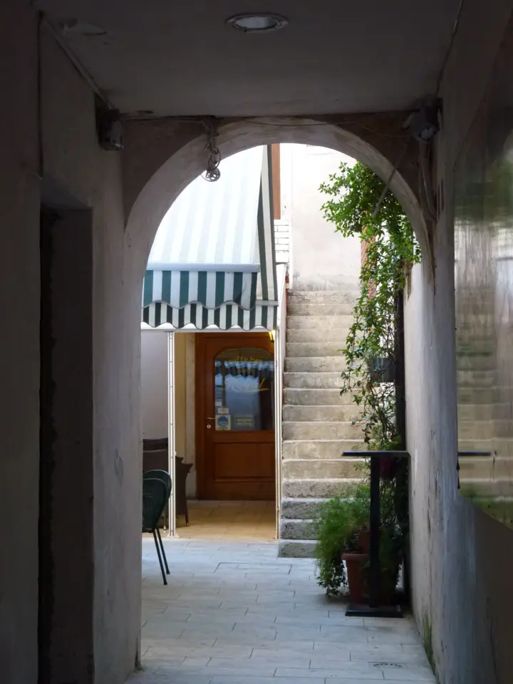 Tínhamos reservado alojamento nos Apartamentos Kolovare Beach, numa rua paralela à que acompanha a zona a que pomposamente chamam “praia” – e que pelos nossos padrões é apenas uma nesga de areão grosso no meio de árvores e junto à água, facto que não nos incomodou minimamente porque praia era algo que não tencionávamos fazer ali. Estes apartamentos ficam a poucos minutos a pé da parte mais antiga de Zadar, e nas traseiras têm uma espécie de terreiro a que só se acede por um portão devidamente fechado, onde o carro ficou em sossego até voltarmos a precisar dele para deixar a cidade.
