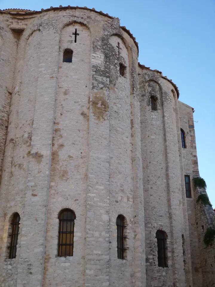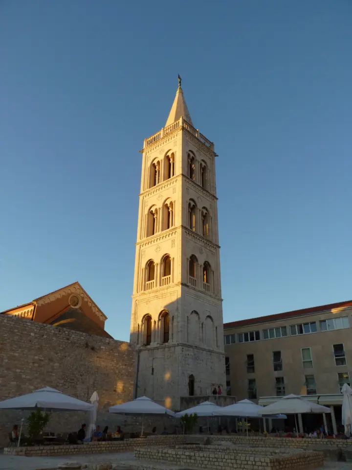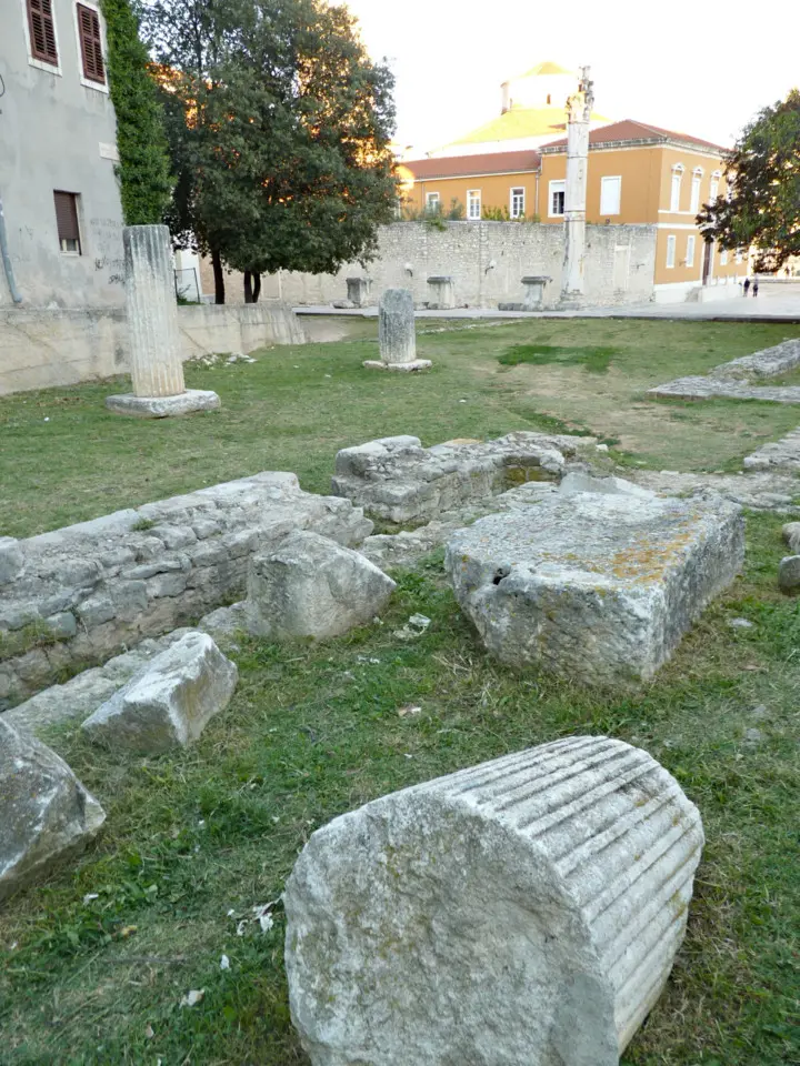 De repente, a rua desemboca num espaço tão amplo que até surpreende: é o Fórum, onde vestígios de ruínas romanas coabitam com o ex libris da cidade, a imponente Igreja de São Donato – construída no séc. IX e um dos maiores exemplos da arquitectura bizantina na Dalmácia –, com a Torre do Sino que se ergue por trás da catedral de Santa Anastácia, e com a Igreja de Santa Maria e a sua Torre de Koloman.