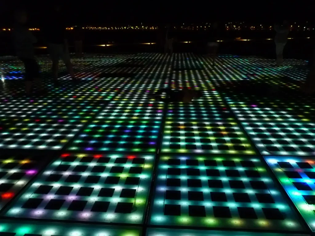 O que nos leva ao segundo pormenor: o grande grupo de pessoas que ali se junta, sobretudo ao final do dia para observar o pôr-do-sol. A experiência é única. E depois, quando o sol já se esconde, começa outra experiência. Alguns metros ao lado, mais uma instalação para despertar os nossos sentidos e o nosso encantamento. Também concebido por Bašić, a “Saudação ao Sol” é um painel circular colocado no chão, com 22 metros de diâmetro e formado por 300 placas de vidro e células solares, que “acordam” quando a noite cai e começam a emitir intermitentemente luzes de cores variadas. O conjunto está programado para interagir com o ritmo das ondas e dos sons emitidos pelo Órgão do Mar. Além disso, funciona como uma espécie de pequena fábrica de energia, produzindo cerca de 46,500 kWh por ano, usados não só para a própria instalação, como também para a iluminação de toda a zona da marginal. O anel metálico que limita o painel tem gravados os nomes dos santos das antigas e novas igrejas da península, os dias em que eles são celebrados e alguns pormenores astronómicos associados a esses dias. Também incrustados no chão, outros painéis mais pequenos mimetizam o sistema solar e compõem uma espécie de caminho de ligação entre as duas instalações.