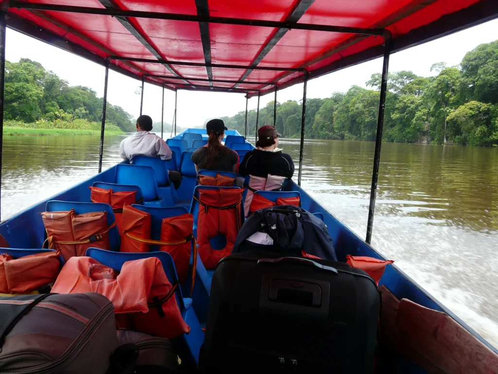 Às onze e um quarto iniciámos mais uma viagem de barco pelos canais de Tortuguero, por um percurso diverso daquele por onde tínhamos chegado. Depois de muitos pedidos de informação e averiguações, tínhamos acabado por chegar à conclusão de que a melhor maneira de irmos de Tortuguero ao Arenal seria em carrinha privada, pois em transportes públicos haveria que apanhar vários autocarros e seria impossível chegarmos a La Fortuna no mesmo dia. Apesar de substancialmente mais cara, é uma viagem menos cansativa e neste caso poupar-nos-ia tempo precioso.
