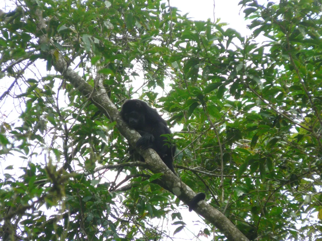 Depois de mais de meia hora de espera na plantação e um breve encontro com alguns macacos-uivadores, o minibus da Pura Vida Tours chegou finalmente. Condutor simpático, ar condicionado, mas estradas igualmente más até Cariari, onde retomámos o asfalto e o percurso passou a ser mais confortável.