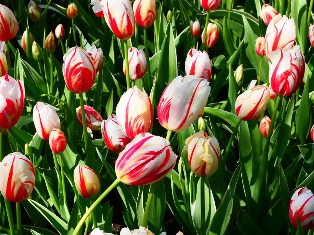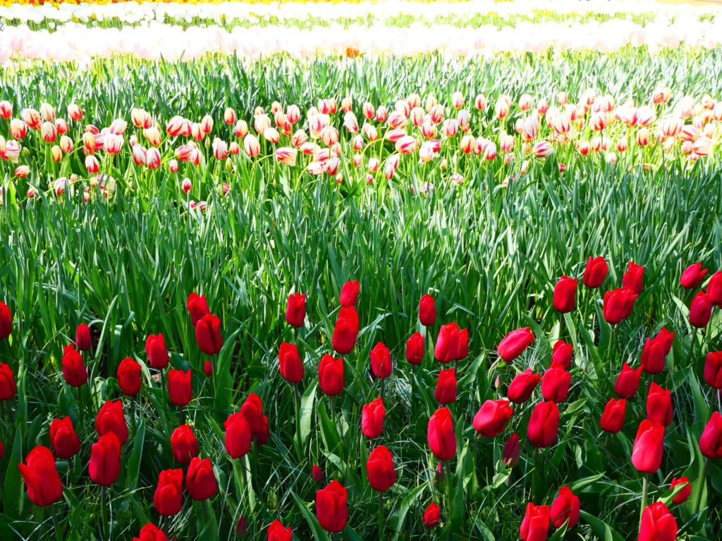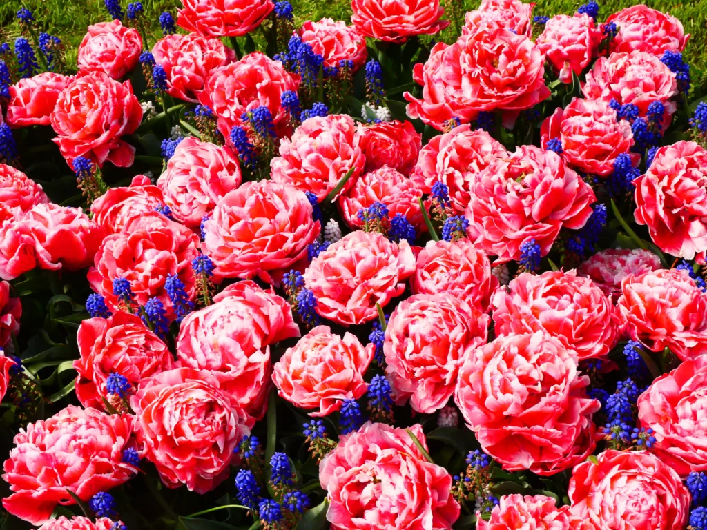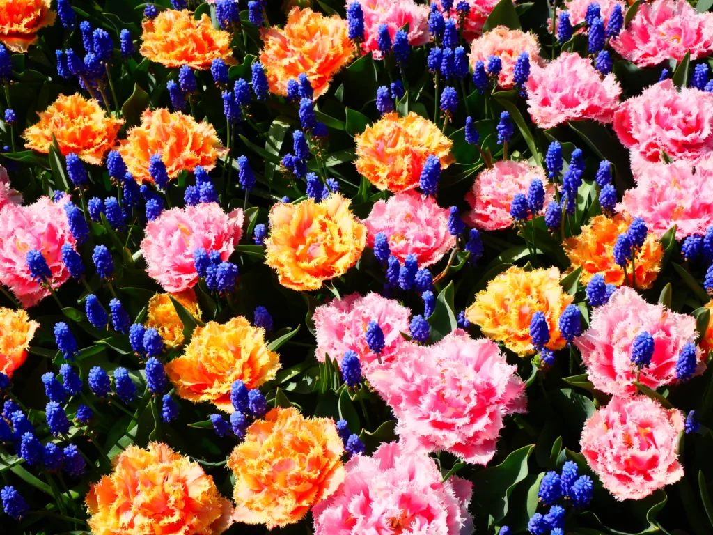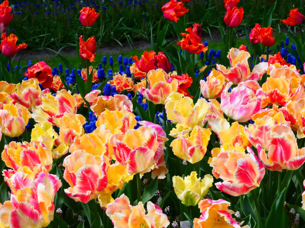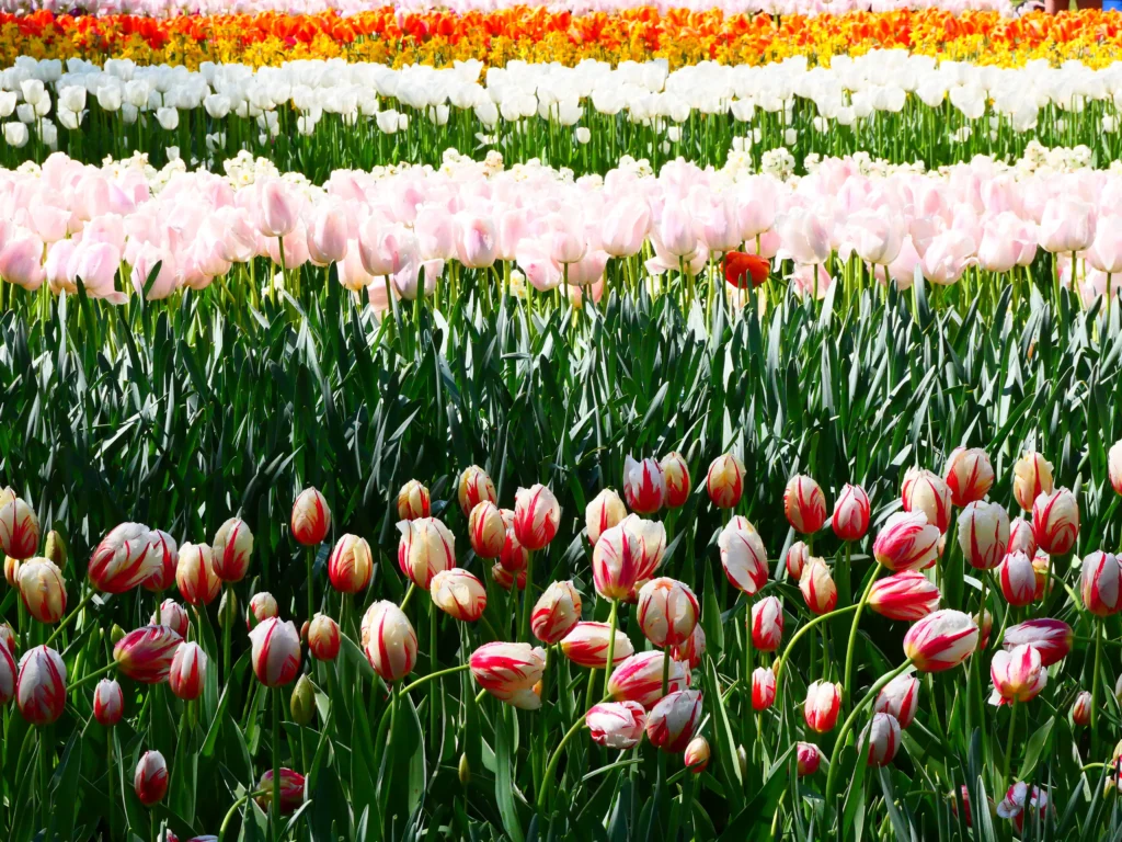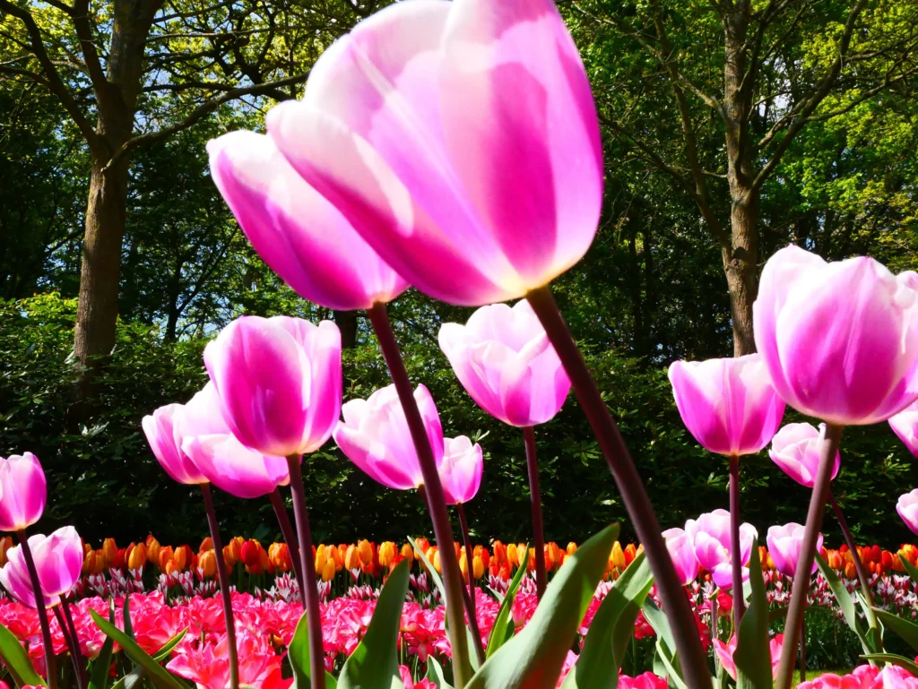Entre as variedades mais conhecidas que é possível encontrar em Keukenhof destacam-se a “Queen of Night”, de tom quase negro e muito elegante; a “Apeldoorn”, vermelha intensa e clássica; a “Golden Apeldoorn”, de amarelo luminoso; a “Angelique”, de pétalas dobradas com aspecto semelhante ao de uma peónia; a “Parrot Tulip”, com pétalas recortadas e cores exuberantes; e a “Rembrandt”, marcada por padrões irregulares que evocam as antigas tulipas do período histórico da tulipomania.
