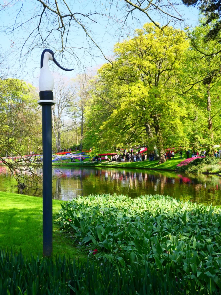 A meio da tarde o ambiente começa a ficar mais sereno, dando-nos oportunidade para explorar as zonas periféricas do Keukenhof e aquelas que são mais concorridas, como o lago e a sua ponte, ou o moinho.