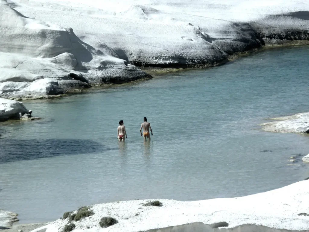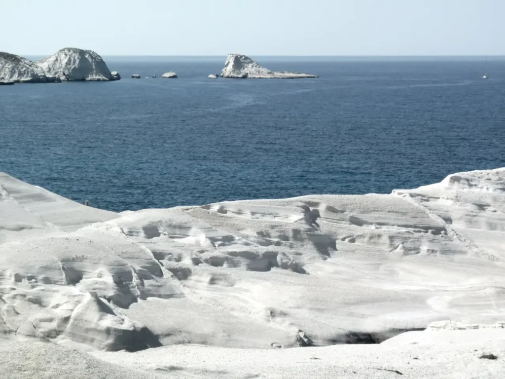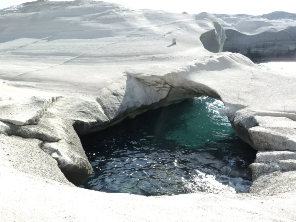 Outra faceta particularmente encantadora de Sarakíniko é revelada em noites de lua cheia, com o luar a reflectir-se vividamente no branco-de-neve das rochas, criando uma paisagem inesquecível.