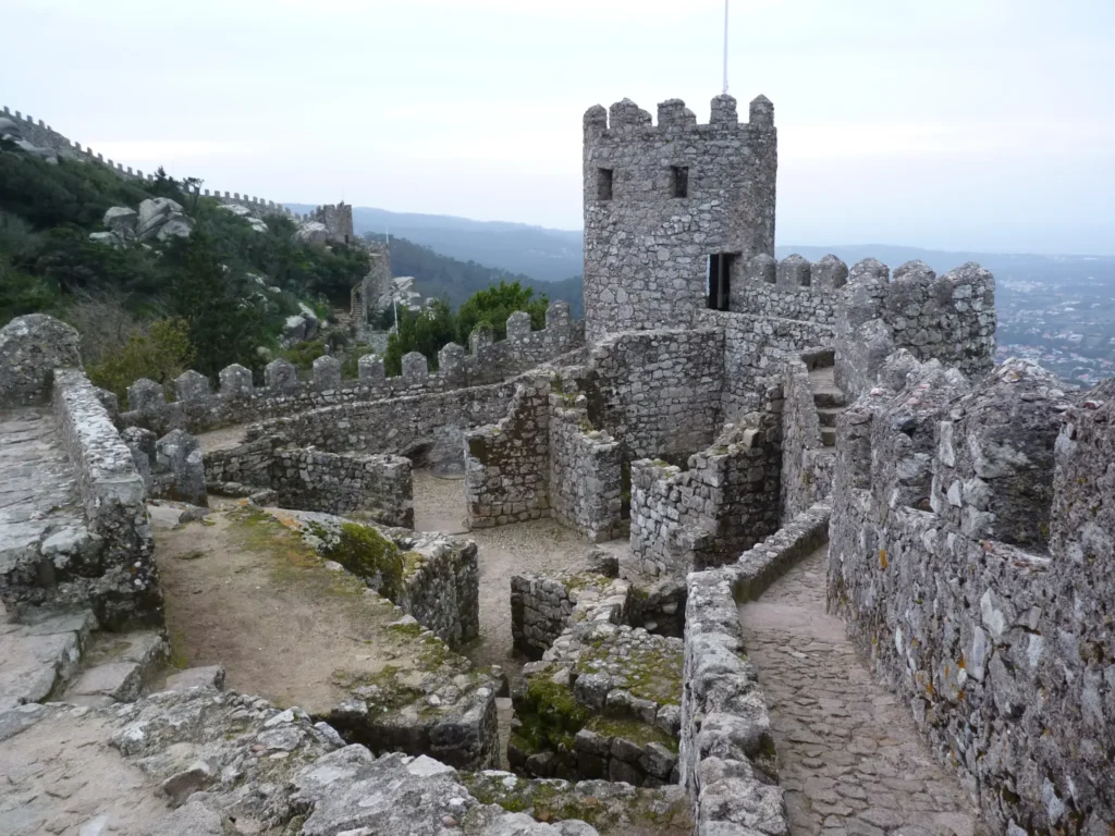 Empoleirado nas alturas da serra e sobranceiro à vila, há mais de onze séculos que o Castelo dos Mouros é testemunha silenciosa da nossa história. Anterior à fundação de Portugal – sabe-se que remonta, pelo menos, à época em que a Península Ibérica estava ocupada pelos muçulmanos – este castelo demonstra bem a importância geográfica da região de Sintra. Passear nas suas muralhas, duplas em grande parte da sua extensão e rodeando uma área com mais de 12 mil metros quadrados maioritariamente arborizada, oferece-nos vistas magníficas das colinas verdejantes que o rodeiam, do vasto oceano que se estende pelo horizonte, e dos palácios e casas de Sintra. Dentro do enorme recinto encontramos uma capela românica, silos de armazenamento e uma cisterna, a torre de menagem e outras torres dispersas pelas muralhas, e ainda uma necrópole medieval, que está a ser alvo de escavações arqueológicas.