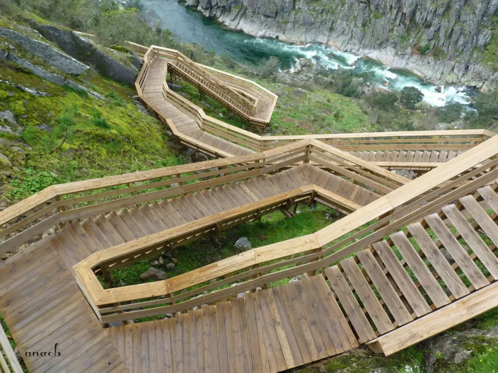 Os Passadiços são uma obra de engenharia excepcional. Construídos em madeira, estendem-se ao longo de mais de 8 km pela margem esquerda do rio Paiva, encontrando-se uma das extremidades na praia fluvial do Areinho e a outra na localidade de Espiunca, ambas no concelho de Arouca.