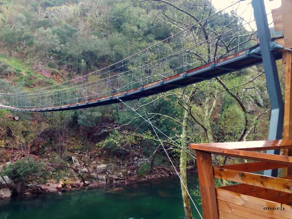 A praia do Vau, mais ou menos a meio do caminho, é outro dos pontos de paragem obrigatória, e a sua ponte suspensa dá ao local um charme irresistível. Percorrê-la é ter a sensação de estar num filme de aventuras, e a perspectiva que se nos oferece do rio é totalmente diferente. Quando está calor, este é o sítio ideal para tomar um belo banho naquele que é considerado um dos rios mais limpos da Europa.