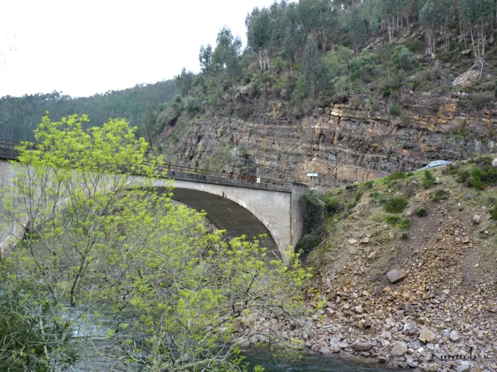 O quilómetro 0 está assinalado ao pé do estacionamento da praia do Areinho, e umas centenas de metros mais à frente encontramos a estrada que passa sobre a ponte romana de Alvarenga, uma ponte do séc. II constituída por um só arco, com 30 metros de altura e 20 de largura no seu vão. É aqui que têm início os 310 degraus que permitem ascender, quase de uma assentada, a mais 100 metros de altura, onde chegamos obviamente já de língua de fora. Mas o cansaço é compensado pela vista soberba que se tem lá do alto, com a estrada cinzenta e sinuosa lá em baixo e o rio a correr no meio.