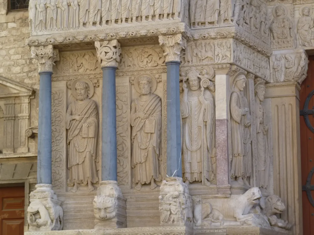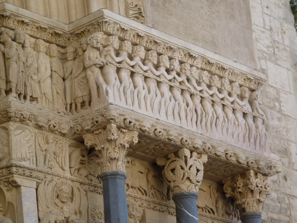 Ruínas romanas é algo que não falta por aqui. Mesmo ao lado da arena encontra-se o Teatro Antigo, classificado como Património Mundial pela UNESCO – tal como, de resto, o anfiteatro e as suas torres, a Igreja de Saint Trophime e o seu claustro, a Torre de Roland, e outros cinco monumentos. Saint Trophime fica na Praça da República e tem um portal românico absolutamente fabuloso, adornado com estatuária representativa do Dia do Juízo Final.